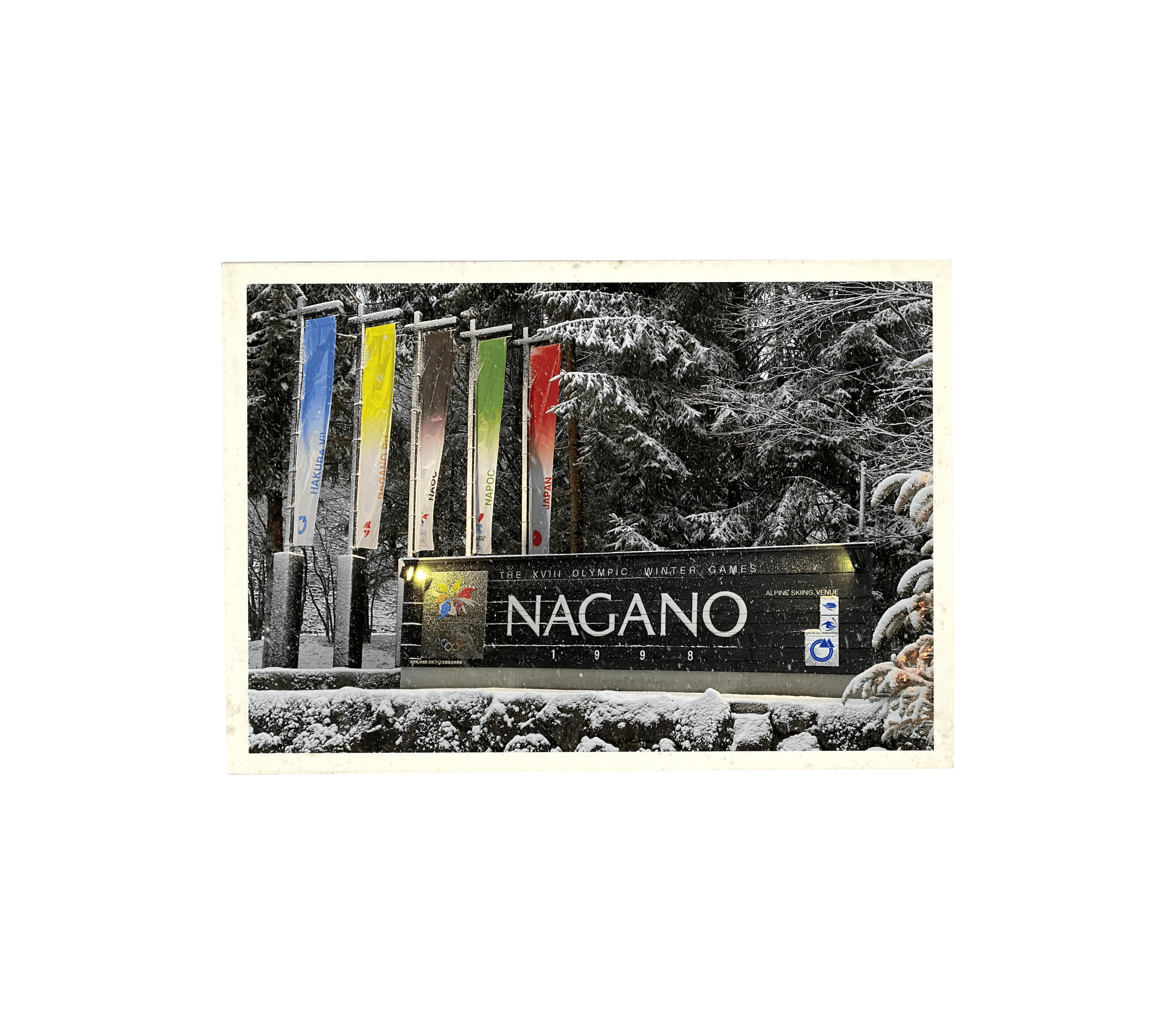 Next was the challenge of funding this ambitious project. Shiojima-san reached out to Hakuba business owners, local citizens, and corporations in Tokyo, including Coca-Cola, Kirin, and Epson, offering rooms at his hotel during the Olympic Games in exchange for their support. His efforts paid off; he successfully raised 10 million yen, and the monument was built. To this day, the sign stands proudly at the base of Wadano Forest, a lasting symbol of his determination and love for Hakuba.